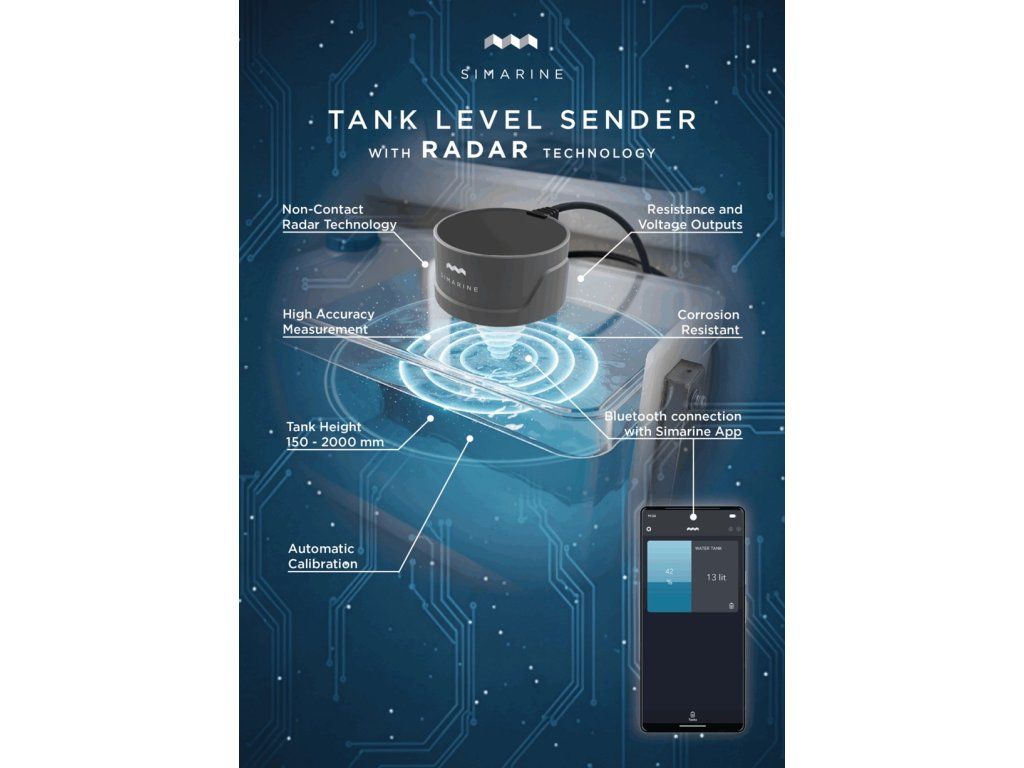 Radarový snímač Simarine STR1 je vysoce přesný radar s automatickou kalibrací pro přesné bezkontaktní měření hladiny kapalin v plastových nádržích o výšce 150-2000mm. Obsahuje 2 odporové a 1 napěťový výstupy + Bluetooth